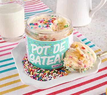 Our Classic Birthday Cake Pot de Gâteau—because every day should feel like your birthday. This cake is a full-on celebration in a jar! Three layers of fluffy vanilla cake packed with colorful sprinkles (because, obviously), smothered in luscious cream cheese frosting inside and out. Topped with rosettes and even more sprinkles—because too many sprinkles? Not a thing.
